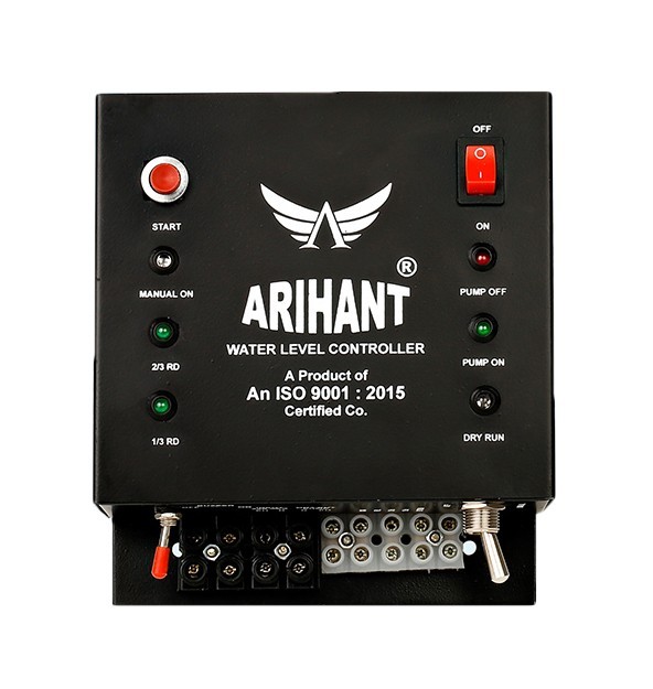 Semi Automatic system to control corporation motors. The user has to turn ON the motor as per his requirement. In case if water is not available in corporation line and user turns ON the motor; a buzzer will start to blow to indicate that water is not available. The buzzer will turn OFF as soon as water starts flowing inside the tank. As soon as the tank gets full, the motor will turn OFF automatically. Besides this, The system comes with a 2 level indication i.e 1/3, 2/3 to let the user know how much water is available in tank. The user can have a look at amount of water available and then turn ON motor as per his need.