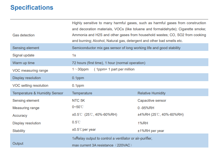 | Gas Detection | Cigarette smoke VOCs such as formaldehyde and toluene ethanol ammonia hydrogen sulfide sulfur dioxide and other harmful gases |
