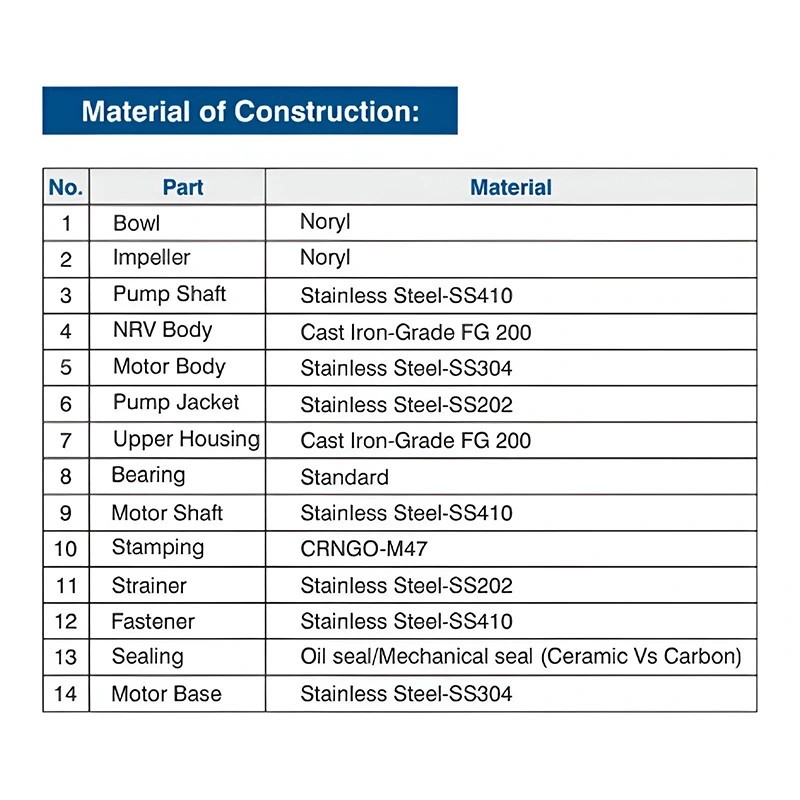 | Type of Pump | V4 Oil Filled Submersible pump |