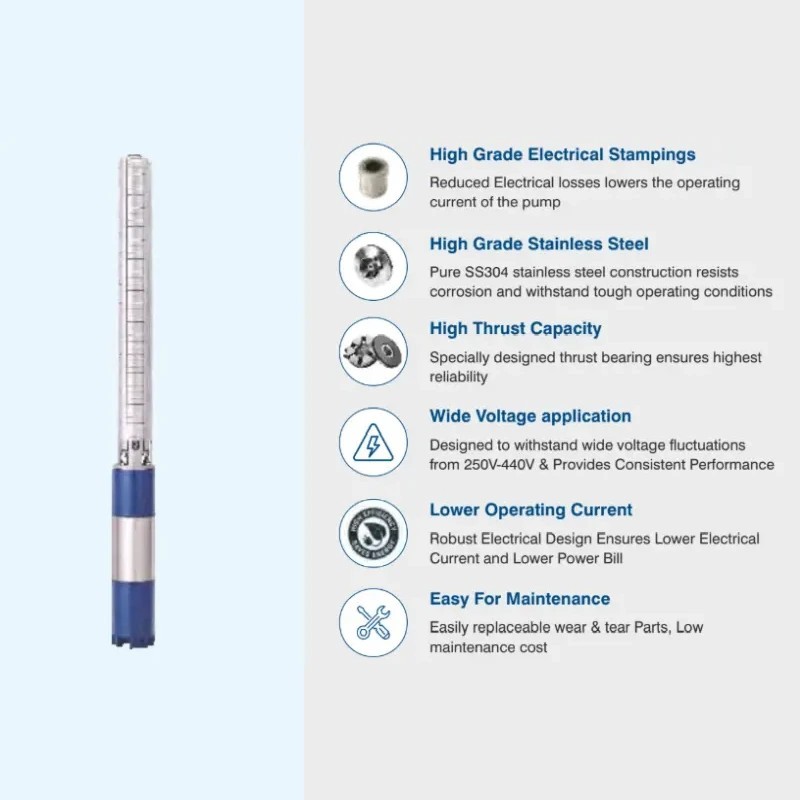 Crompton 5CSSF5-7560(3PH) 7.5 HP Three Phase Submersible pump series. This pump is engineered with state-of-the-art technology, ensuring durability and efficiency in water management. Its robust construction features advanced thermal protection and superior anti-corrosion capabilities, ready to tackle the most challenging conditions. Equipped with exceptional suction power, this pump is perfectly suited for both residential and agricultural uses. It smoothly handles voltage fluctuations, maintaining consistent performance with minimal maintenance requirements thanks to its innovative anti-jam technology. The Crompton 5CSSF5-7560(3PH) sets a new standard in the industry, combining powerful performance with reliability, making it the ideal choice for anyone seeking an effective water management solution. Available on EnvMart, these Industrial Pumps are manufactured using premium materials and advanced techniques to meet high industry standards. Crompton Pumps are renowned for their reliability and quality, making this pump an excellent option for both residential and industrial applications. Explore the full range of high-quality Crompton Pumps and find the perfect solution for your needs.
