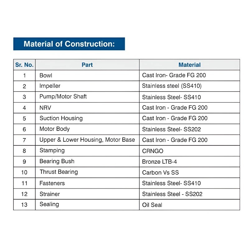 | Type of Pump | V6 Water Filled Submersible pump |