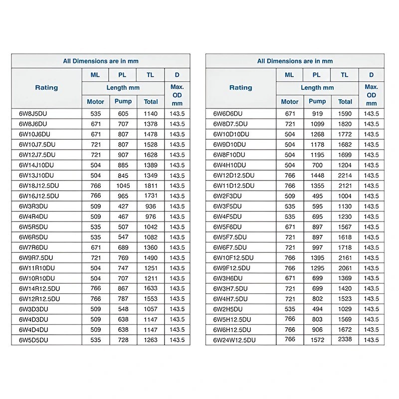 | Type of Pump | V6 Water Filled Submersible pump |