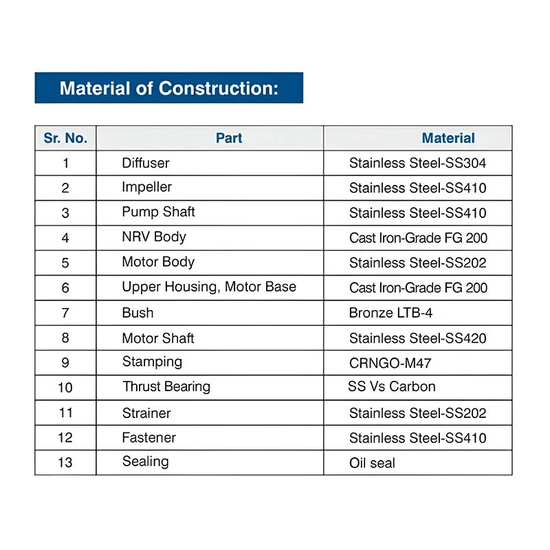 | Impeller Material | Stainless Steel |