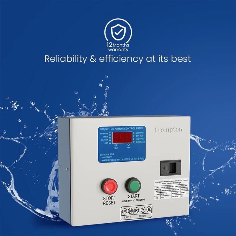 Crompton CP200320D 7.5 HP Three Phase Digital Control Panel is designed for efficient and reliable performance in industrial and commercial applications. Built with advanced overload protection and a robust contactor, it ensures safety and durability during operation. The panel features real-time current and voltage monitoring, allowing for precise control and quick troubleshooting. With a wide voltage application range, the Crompton Digital Control Panel offers stability under fluctuating conditions, making it a dependable choice for various environments. Its specially designed capacitors improve energy efficiency, while the easy-to-maintain design minimizes downtime and enhances operational productivity. Known for its reliability and high-quality construction, Crompton products provide long-lasting solutions for diverse control needs. Available on EnvMart, this Control Panel series is manufactured using premium materials and advanced techniques to meet high industry standards. Crompton Control Panels are known for their reliability and durability, making them the perfect choice for both industrial and commercial applications. Explore the full range of Crompton Digital Control Panels on EnvMart