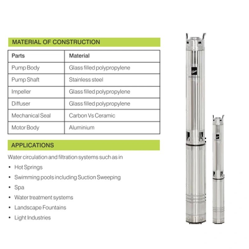 Kirloskar KU4-1509S-CP A 2 HP Single Phase Borewell Submersible Pump is made for high efficiency, energy savings, and long-term performance. Built with a modern motor design, Kirloskar pumps are designed to work efficiently with lower power consumption, helping to reduce electricity costs. This makes them a reliable choice for residential, industrial, and agricultural applications.The wide voltage design allows the pump to withstand voltage fluctuations, reducing the chances of motor burnout in case of low voltage conditions. The dynamically balanced rotating parts help reduce vibrations, protecting internal components from damage, and ensuring smooth and steady operation for years.To prevent overloading, this pump is built to handle operation at lower heads without risking motor burnout, helping to reduce maintenance costs and prevent unexpected breakdowns. The lightweight and compact design, made from high-quality engineering materials, makes it easy to handle, install, and transport.The splined shaft, developed using cold extrusion technology, offers better surface strength, smooth performance, and longer life. The flatter efficiency curve ensures that efficiency remains stable across various working conditions, making it suitable for different applications.Designed for horizontal applications, this pump features high-quality ball bearings, making it ideal for high-head water transfer in residential complexes and other similar environments.EnvMart is offering Kirloskar pumps for domestic, agricultural, and industrial use. Explore our full range of pumps at guaranteed lowest prices to find the right one for your needs.