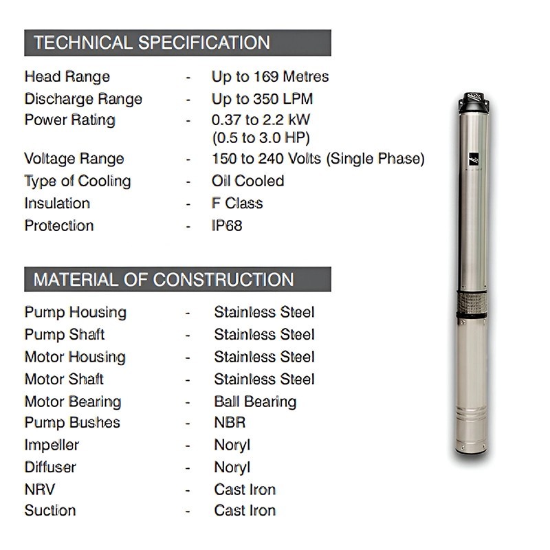 | Type of Pump | Oil Filled Submersible Pumpset |