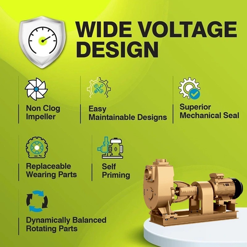 Kirloskar SP-3A EE4 COUPLED SET CII MS SS 5 HP Three Phase Self Priming Coupled Set is made for efficient and reliable performance, well-suited for sewage, dewatering, and wastewater applications. With a self-priming feature, Kirloskar pumps do not require a foot valve or priming pump every time, allowing for quicker and smoother operation.The non-clog impeller can handle suspended soft solids up to 60 mm in size, making this pump useful for draining wastewater and sewage. The flatter efficiency curve allows the pump to work well under different conditions with little change in efficiency.To ensure long service life and reduce maintenance needs, this pump is built to prevent overloading, lowering the chance of motor failure, even if it runs at a lower head than recommended. This helps in avoiding extra maintenance costs and reducing breakdowns.The dynamically balanced rotating parts lessen vibration, keeping the internal parts safe from damage and allowing the pump to work steadily and smoothly. The replaceable wearing parts make it easier to repair and keep in good condition, extending its useful life.With a simple design for easy upkeep, the pump allows parts to be changed with ease, meaning it can be repaired even in distant places by ordinary technicians. The CED-coated impeller gives better protection against rust, helping the pump to last longer and work more effectively.EnvMart is offering Kirloskar pumps for domestic, agricultural, and industrial use. Explore our full range of pumps at guaranteed lowest prices to find the right one for your needs.