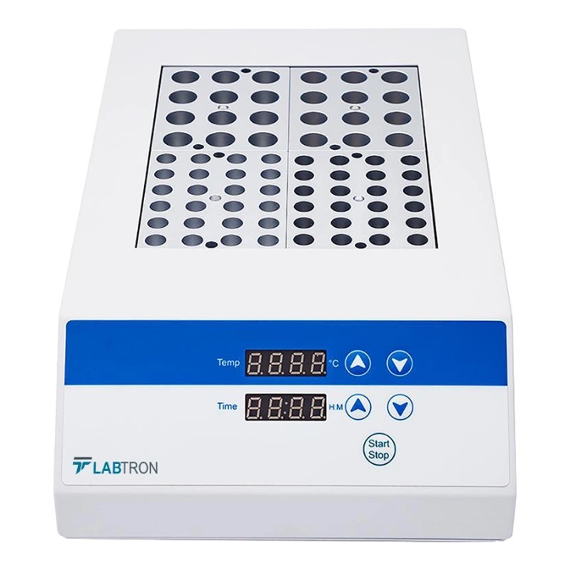 Dry Bath Incubator LDBI-A14 is equipped with 4 interchangeable blocks, allowing diverse sample configurations to meet various laboratory needs. The microcomputer-controlled system ensures precise temperature control. The unit boasts fast heating times, with the ability to reach 100°C in less than 10 minutes. It maintains exceptional temperature stability with a tolerance of ±0.3°C at 40°C. Our incubator is designed to deliver superior temperature accuracy and versatility for sample preservation, enzyme reactions, and lab processes.