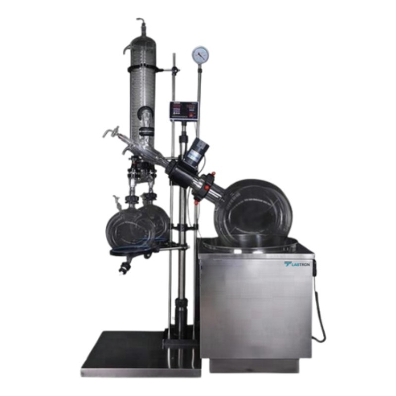 Rotary Evaporator LRE-A13 is a high quality rotary evaporator to meet the distillation needs of laboratory applications. Its optimized bath volume allows for fast heat-up and the condenser has glass tubes that utilize the 15000 cm² surface extremely efficiently. It is crafted for minimal space requirement and is integrated with heating bath, automatic motorized lift and bottom discharge receiving flask making it ideal for even complex distillation processes. This model of rotary evaporator delivers reliable and reproducible process results that are usually reserved for far more costly systems.