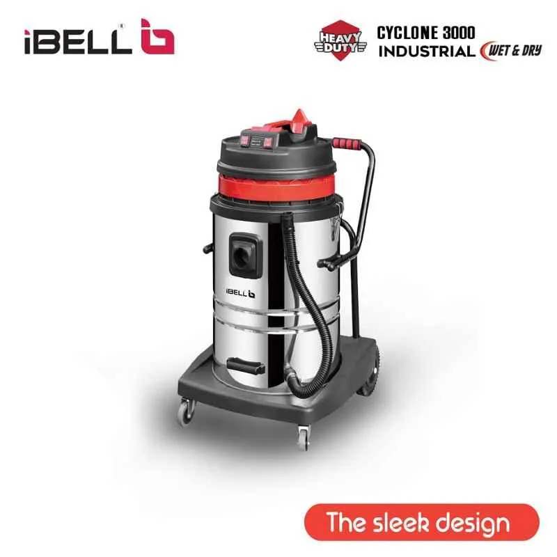 The iBELL Cyclone 3000 is a powerful 1500W industrial-grade vacuum cleaner ideal for extensive cleaning tasks. With a suction pressure of 22kPa and air flow of 106 lps, it effectively lifts dust, dirt, and debris from carpets, tiles, and hard floors. The integrated HEPA filter captures fine allergens, ensuring cleaner air quality indoors. Its 70L tank reduces the need for frequent emptying, making it ideal for commercial and heavy-duty home use. Designed for both wet and dry applications, it operates efficiently on 220-240V. The iBELL Cyclone 3000 is a high-performance, reliable solution for large-scale cleaning.