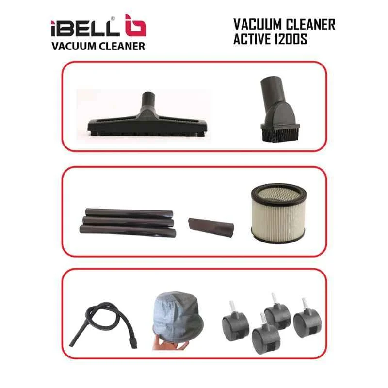 The iBELL ACTIVE1200S is a robust wet and dry vacuum cleaner featuring a powerful 1200W motor and 17kPa suction for deep cleaning. Its 20L stainless steel tank ensures long cleaning sessions without frequent emptying. The built-in HEPA filter traps allergens and fine dust, promoting a healthier environment. Ideal for home, garage, or light commercial use, it also includes a blower function for added versatility. With a quiet operation under 80 dBA, the ACTIVE1200S is your all-in-one cleaning partner for efficiency and comfort.