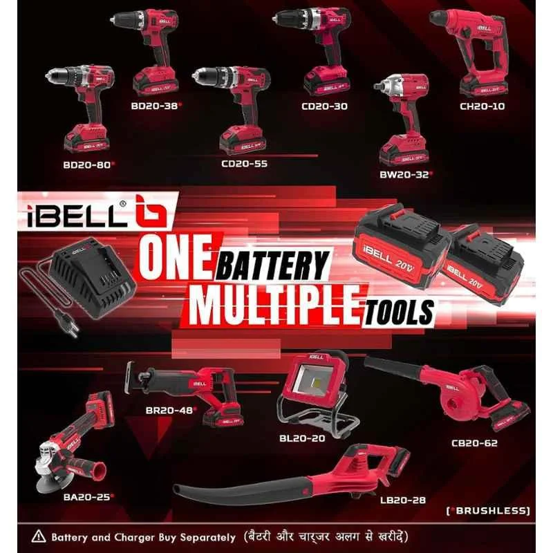 The iBELL BD20-80 Brushless Cordless Impact Drill – your reliable solution for heavy-duty drilling tasks. Delivering a robust 80Nm torque and powered by a 20V 2Ah battery, this tool offers exceptional runtime and consistent output. The brushless motor ensures longer lifespan and higher efficiency. The aluminium chuck provides secure bit holding, while the cordless design enhances portability. Ideal for drilling into wood, metal, and masonry. Whether for DIY or professional use, this drill blends power and precision in one compact form.