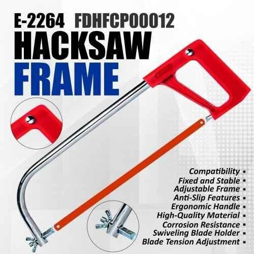 The Eastman E-2264 Hacksaw Frame features a 12-inch steel body with a durable red ABS handle for grip and control. Designed for clean and efficient cutting of metal and plastic, it uses a high-quality alloy steel blade for long-lasting sharpness. Stylish, sturdy and built for frequent use in workshops or DIY projects.
