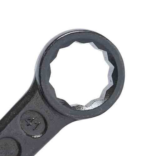 The Eastman E-2082 100mm Slogging Spanner is made from high-quality chrome vanadium steel and features a black chrome finish for corrosion resistance. The 100mm size ensures maximum leverage, making it suitable for heavy-duty tasks. Its ring end design enhances torque transmission, making it an ideal tool for professionals and DIY enthusiasts alike.