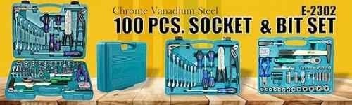 The Eastman 100 Pcs Socket & Bit Set is the ultimate toolkit for all your socket needs. Made from high-quality chrome vanadium steel, this durable set includes 1 Pc 1/4 Inch Drive Parts / 1 Set 4-13 mm Sockets / 5 Pcs 8-13 mm Deep Sockets / 1 Pc Ratchet Handle / 1 Pc Spinner Handle / 1 Pc Universal Joint / 1 Pc Extension Bar / 3 Pcs Coupler & Shank Bit Adaptor / 3 Pcs 4-7 mm Slotted Bits / 3 Pcs PH1-PH3 Phillips Bits / 8 Pcs 1/2 Inch 10-32 mm Drive Parts / 2 Pcs 125 mm Universal Joint & Extension Bar / 2 Pcs 16 & 21 mm Spark Plug Sockets, making it ideal for professional mechanics and DIY enthusiasts alike. With slotted and Philips bits, universal joints and spark plug sockets, it’s a reliable companion for any workshop.