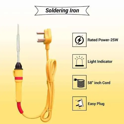 Package Contents: Soldering Iron / 5 Meter Soldering Wire / Soldering Paste / Soldering Iron Stand / Wire Cutter / Tweezer / Desoldering Wick / Line Tester / Electrical Tape / 2 Pcs in 1 Pc Screwdriver / Desoldering Pump & Sponge