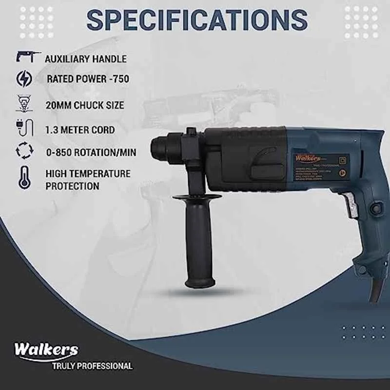 Walkers 750W Forward Reverse Rotation Hammer Impact Drill Machine with 3 Bits, Drill Chuck, SDS Adapter 2 in 1 Screwdriver, WKCB339 is a best solution designed to meet the highest standards. It includes features that cater to both professional and domestic applications, making it efficient. Carefully developed through advanced manufacturing techniques and sourced from verified vendors, this tool ensures you achieve optimal results in your projects. Whether you're upgrading your workspace or seeking a dependable product for regular use, Walkers 750W Forward Reverse Rotation Hammer Impact Drill Machine with 3 Bits, Drill Chuck, SDS Adapter 2 in 1 Screwdriver, WKCB339 is tailored to deliver consistent quality and satisfaction. Available on EnvMart, Drill Machines offer power and precision for every application. Walkers is renowned for engineering reliable, high-performance tools you can trust.