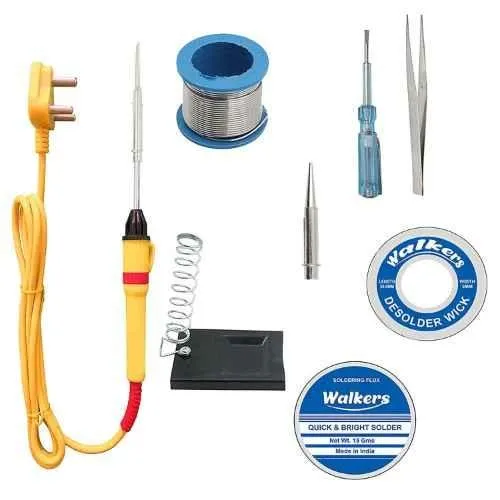 Package Contents: 1 Pc Soldering Iron / 1 Pc Tweezer / 1 Pc Soldering Iron Stand / 1 Pc Soldering Paste / 1 Pc Soldering Wire / 1 Pc Desoldering Wick / 1 Pc Pointed & 1 Pc Line Tester