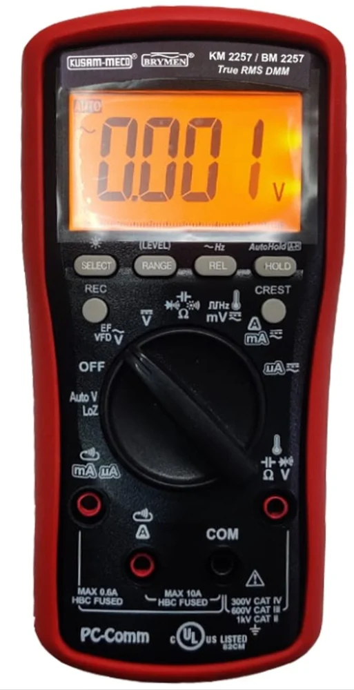 | Package Contents | Kusam Meco KM 2257 3-5/6 DIGIT 6000 COUNTS TRMS DIGITAL MULTIMETER. / Test Lead Pair / Batteries Installed / User's Manual / BKP60 Banana Plug Type-K Thermocouple |