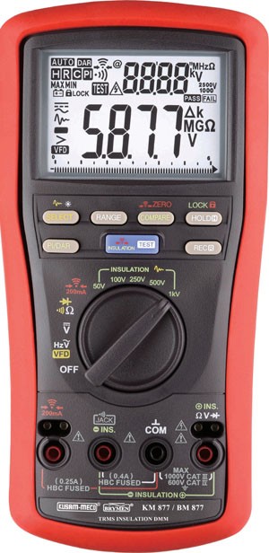 Kusam Meco KM877 Digital Insulation Multimeter is engineered for comprehensive electrical testing in industrial and field applications. It offers True RMS accuracy for voltage, current, and insulation checks. With its strong casing and large display, it delivers easy readings and robust performance in demanding conditions. Technicians and engineers use it for preventive maintenance and equipment evaluation.