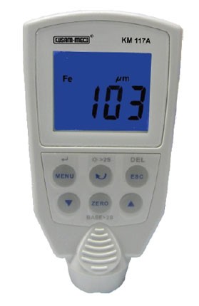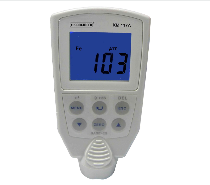 The Kusam Meco KM117A Coating Thickness Gauge is a portable, user-friendly device for measuring coating thickness on metal surfaces. It features a backlit LCD display for clear visibility and supports both metric and mil readings. Designed for single-hand operation, it automatically powers off to save battery life when not in use. This digital gauge provides accurate, non-destructive measurement of coatings such as paint, enamel, or plating on ferrous and non-ferrous materials. Ideal for automotive workshops, manufacturing industries, and quality inspection tasks, it ensures consistent precision in surface evaluation, making it a dependable tool for professionals seeking accuracy and durability in every test.