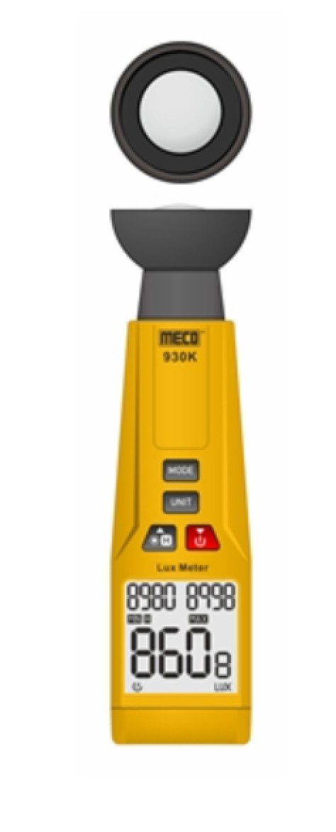 The Meco Lux Meter 930K is designed for measuring light intensity with high precision in lux units. Ideal for workplace inspections, lighting system assessments, and photography environments, it features a sensitive photodiode sensor and a digital LCD for real-time display. Its compact, handheld design makes it portable and easy to use, while the wide measurement range and fast response time ensure consistent results. This device is useful for lighting professionals, maintenance personnel, and energy auditors to ensure compliance with illumination standards.