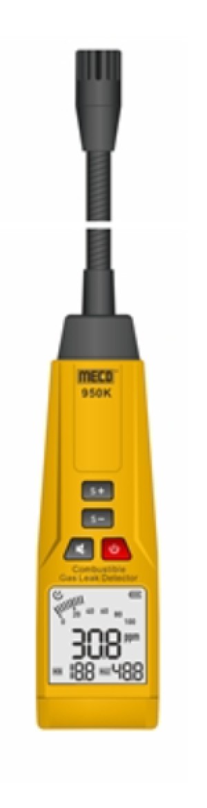 The Meco 950K is a handheld combustible gas leak detector that provides early warning for potentially hazardous gas leaks. Compatible with gases like methane, propane, and butane, it features a flexible sensor probe, audible and visual alarms, and fast response detection. It's ideal for domestic, commercial, and industrial use during gas line inspections, HVAC servicing, and safety audits. Compact, battery-operated, and easy to use, the 950K enhances safety and leak detection efficiency.