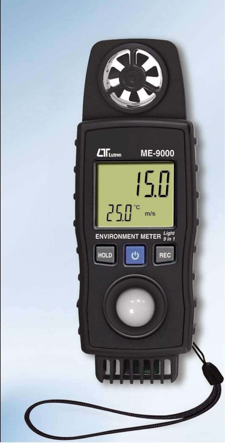 Lutron Multifunction Environment Meter ME 9000 is a versatile 5-in-1 instrument measuring light, sound level, humidity, temperature, and air velocity. Compact and professional, it provides accurate and reliable environmental monitoring in laboratories, industrial facilities, and HVAC applications. Easy to operate and portable, the ME 9000 ensures consistent results for safety assessments and environmental studies. It is a trusted tool for engineers, technicians, and researchers.