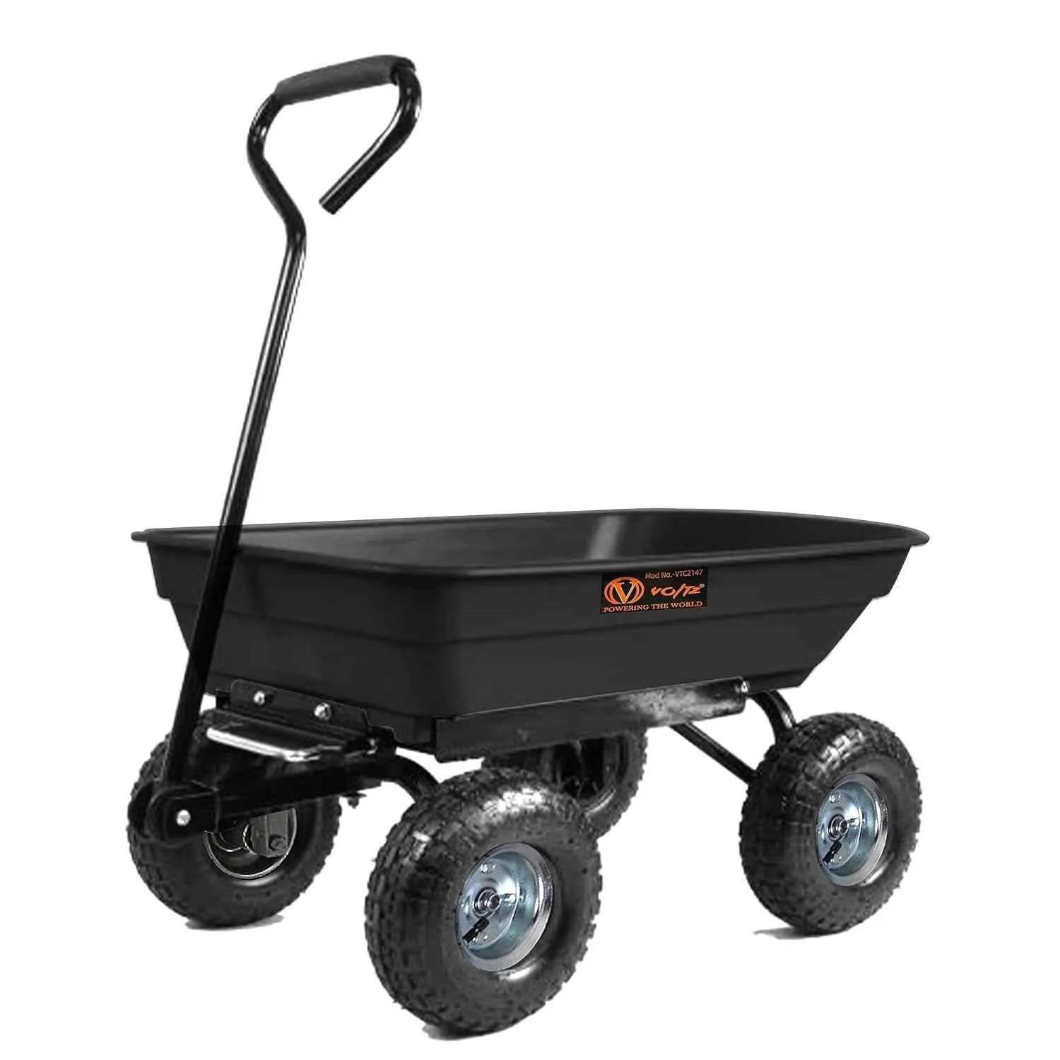 The Voltz 120Kg Black Poly Dump Cart is built for heavy-duty hauling tasks. Constructed with a sturdy steel frame and durable black poly material, this cart offers exceptional strength and longevity. Equipped with four robust wheels, it provides smooth maneuverability across various terrains, making it ideal for gardening, landscaping, and construction projects. The innovative dump feature makes unloading materials easy and efficient. Backed by a 6-month warranty, it guarantees quality and reliability for all your hauling needs.