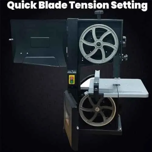 The Voltz 350W 1400rpm Benchtop Band Saw is perfect for woodworking tasks. With a 1400 rpm no-load speed and 45-degree cutting angle, it provides versatile, precise cuts. The steel blade offers durability, while the corded electric design ensures reliable power. Ideal for home or professional woodworking projects, its sturdy black design adds both functionality and style.