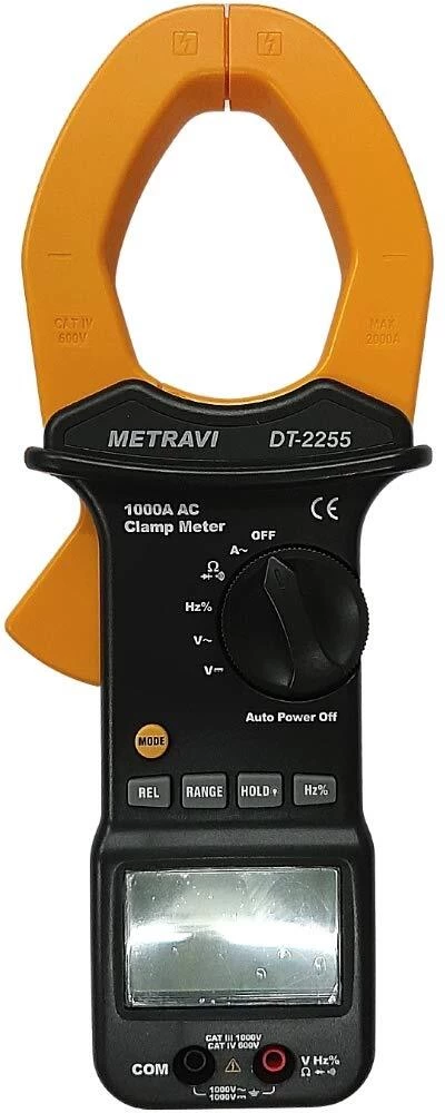The Metravi Digital AC Clamp Meter DT-2255 is designed for measuring AC currents up to 1000 A and voltages up to 750 V in electrical systems. The clamp-on design allows for safe, non-invasive measurements, making it ideal for electricians, technicians, and engineers. The digital display ensures accurate and easy-to-read results, making it an essential tool for electrical diagnostics and maintenance in both residential and industrial applications.