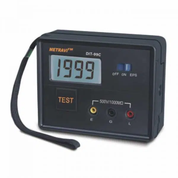 The Metravi 1GΩ Digital Insulation Tester DIT-99C is a high-precision instrument for measuring insulation resistance up to 1 GΩ. It is ideal for testing the insulation of electrical systems, cables, and equipment, ensuring safety and reliability. The digital display provides clear and accurate readings, and its compact design makes it ideal for on-site testing. Essential for electrical maintenance professionals, this tester helps prevent electrical faults and hazards.