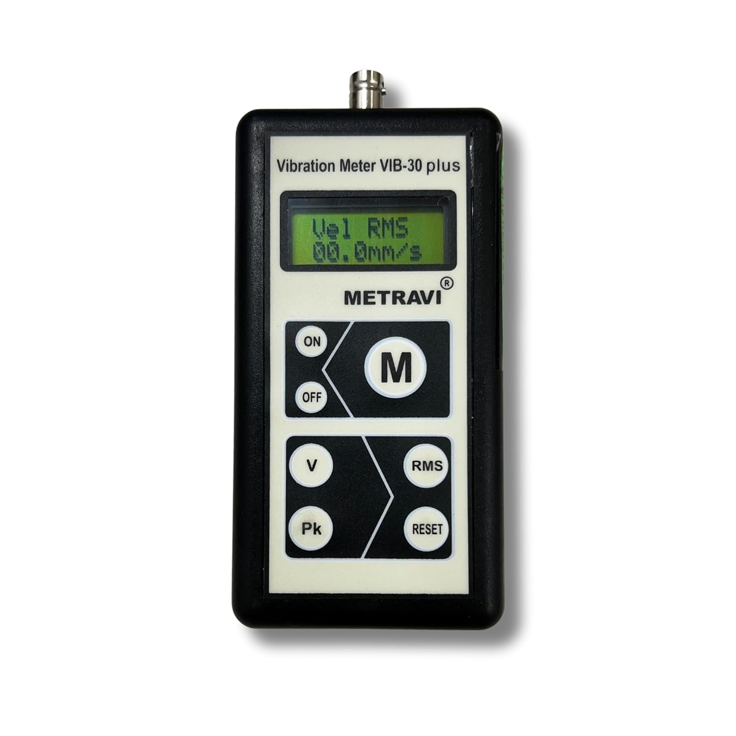 Metravi VIB-30 Portable Vibration Meter is engineered for measuring vibration velocity, acceleration, and displacement in rotating machines. Compact and easy to use, it helps identify imbalance, misalignment, and bearing faults before costly breakdowns occur. The VIB-30 features a digital display, fast response, and wide frequency range for accurate condition monitoring. Ideal for maintenance engineers, it ensures reliable vibration diagnostics in motors, pumps, fans, and compressors for predictive maintenance and machinery health analysis.