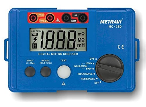 The Metravi Blue Backlit LCD Digital Motor Checker, MC-38D A reliable and accurate device from the trusted brand Metravi, designed for process monitoring. It features an impressive inductance resolution from 0.001mH to 0.001H, with an inductance range of 0-2mH/20mH/200mH/20H. Certified with CAT-III 600V & IEC-61010-1, it guarantees safety and precision in measurements. The backlit LCD display ensures clear readability in all lighting conditions, and it is powered by a simple battery for convenience. With an accuracy of ±1.5%, this motor checker provides precise results every time. For any inquiries, contact customer care at +91 33 46057739.