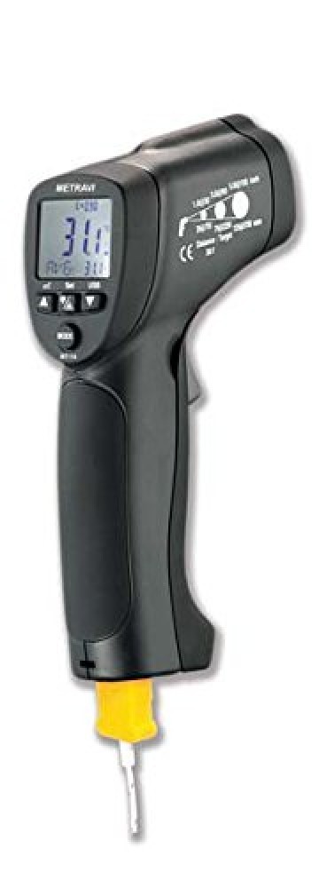 The Metravi Digital Non-Contact Infrared Thermometer MT-14 is a highly efficient and accurate tool for measuring temperatures without direct contact. With a wide temperature range, it is ideal for detecting heat in machinery, electrical components, or even food. Its non-contact design ensures safety and convenience, allowing you to measure temperatures from a distance. The thermometer features a backlit LCD display for easy reading and a laser pointer for precise targeting, making it a must-have tool for both industrial and domestic use.