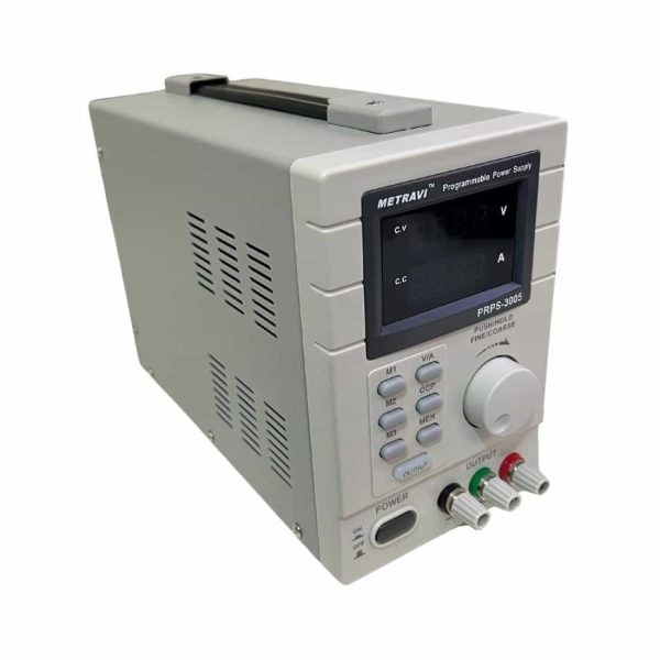 Metravi PRPS-3005 Programmable DC Regulated Power Supply provides digitally controlled voltage and current up to 30V/5A. It features programmable presets, overload protection, and excellent line/load regulation. With USB interface for PC connectivity, it enables remote operation and monitoring. Designed for electronic testing, research, and calibration labs, the PRPS-3005 ensures low noise, accurate power output, and efficient performance for professional-grade DC power applications.