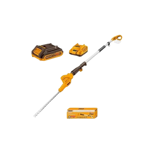 The Ingco 20V Li-ion Pole Hedge Trimmer is a powerful cordless tool perfect for effortless garden maintenance. With a 460 mm blade length and a max speed of 2800 spm, it delivers clean, professional cuts. Its 2.4 m pole design helps reach tall hedges without ladders. Powered by a 20V Li-ion battery, it ensures long-lasting use and cordless freedom. The package includes 1 Pc Battery Pack and 1 Pc Charger for added convenience. Trusted for durability and performance, The Ingco hedge trimmer is a reliable companion for every gardener seeking precision and power in one tool.