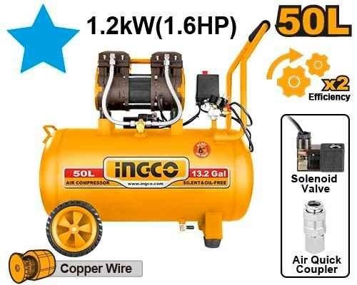 The Ingco 1.6HP 50L Oil-Free System Air Compressor is designed for high-performance applications. With a 2850 rpm speed, it efficiently converts power into compressed air. This compressor is perfect for inflating tires, supplying clean air to gas cylinders, and more. Its oil-free design reduces maintenance and ensures a longer lifespan. With 1.6 HP of power, it provides reliable operation under high temperatures, giving you full control over air quality. Ideal for both residential and industrial tasks, this compressor delivers excellent value.