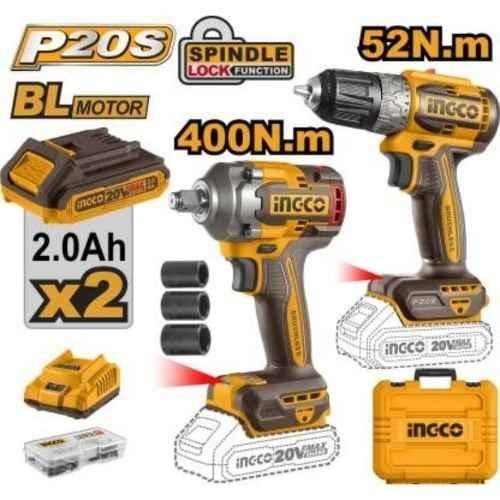 The Ingco 20V Cordless Drill & Impact Wrench Combo Kit, model CKLI20271. Featuring a high-speed brushless motor, this powerful duo offers no-load speeds up to 2000 rpm and 400 Nm of torque making it perfect for drilling, fastening, and automotive work. The 10mm chuck, 22+1 torque settings, and included sockets (17, 19, 21 mm) provide unmatched versatility. Powered by a long-lasting lithium-ion battery, this combo is ideal for professionals and serious DIYers who demand durability and performance. Experience power, precision, and reliability backed by Ingco’s trusted engineering.