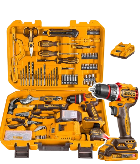 The Ingco 165 Pcs 20V Tools Combo Kit is a complete power tools set for both DIY users and professionals. Featuring a 20V Li-ion impact drill with a powerful 22500 bpm impact rate, it includes essential tools like a hammer, pliers, wrench, screwdrivers, measuring tape, knife, hacksaw frame, drill bits, precision screwdrivers, and over 80 screws and plugs. The 2Ah battery and charger ensure long-lasting operation. Designed for efficiency, portability, and versatility, this combo kit handles a wide range of repair and installation tasks with ease.