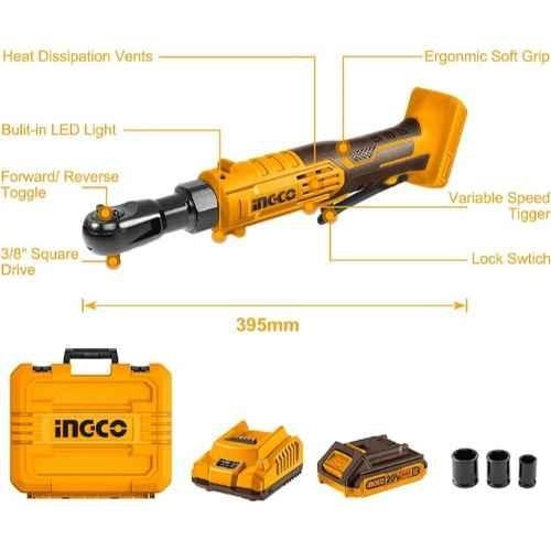The Ingco CDRLI2060152 Cordless Ratchet Wrench redefines convenience with its 20V 2Ah lithium-ion battery-powered performance, perfect for automotive and mechanical tasks. Whether you're working in tight engine bays or under vehicles, this cordless wrench makes fastening effortless. Its compact and ergonomic design ensures easy handling in confined spaces, while the powerful motor delivers consistent torque output. Ideal for mechanics and DIYers alike, the ratchet comes with multiple sockets for flexibility across fastener sizes. The battery delivers long runtime, and the charger ensures minimal downtime. It Contains 1 Pc Ratchet Wrench, 1 Pc Battery, 1 Pc Charger, 3 Pcs Sockets with Plastic Box, giving you a complete set ready for action.