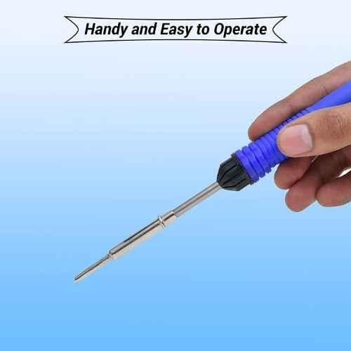 Package Contents: 25W Soldering Iron, Tweezer, Soldering Iron Stand, Soldering Paste, 5 Meter Soldering Wire, Desoldering Wick, Wire Cutter, Line Tester, Electrical Tape, ESD Brush & Desoldering Pump