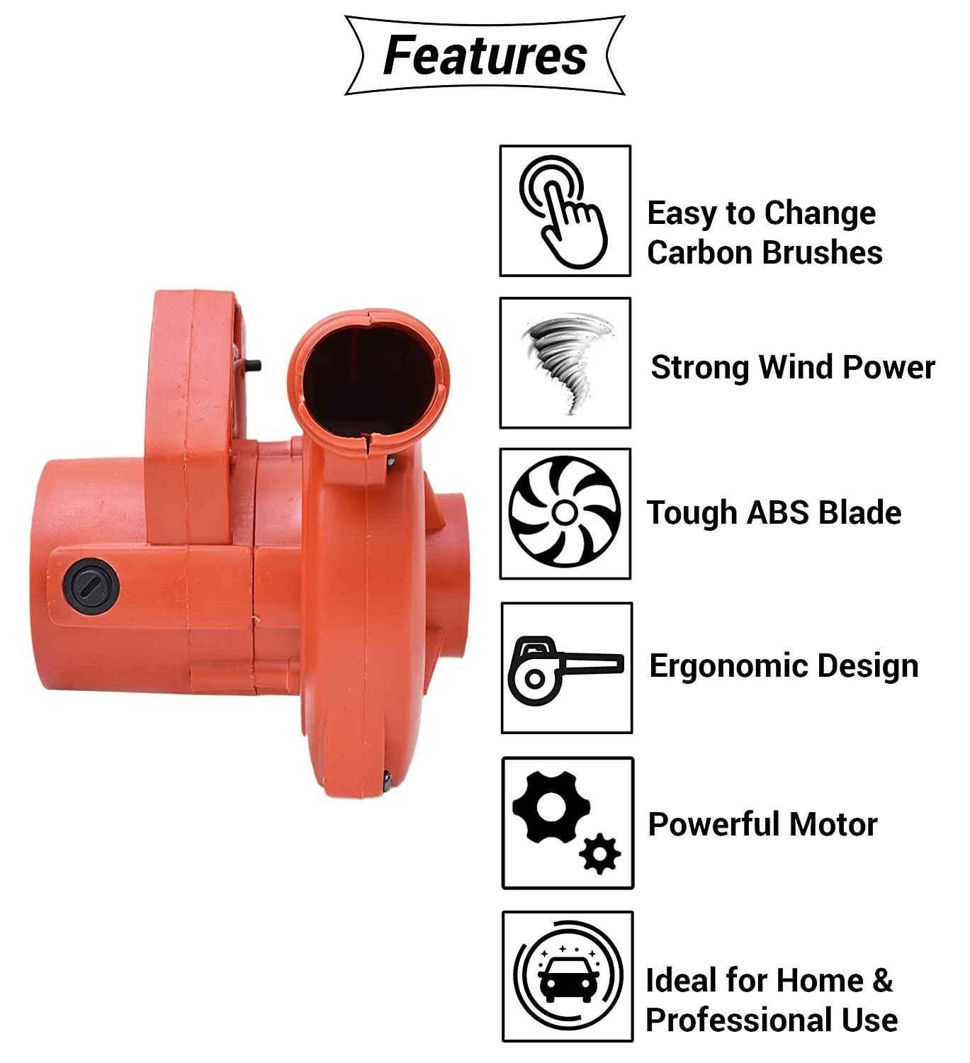 Package Contents: 1 Pc Air Blower Machine, 1 Pc Air Blowing Pipe, 1 Pc Dust Collector Bag, 1 Pair Gloves, 1 Pair Carbon Brushes, 5 Pcs Hand Tool Kit include Plier, 2-in-1 Screwdriver, Line Tester, Electrical Tape & Wire Cutter