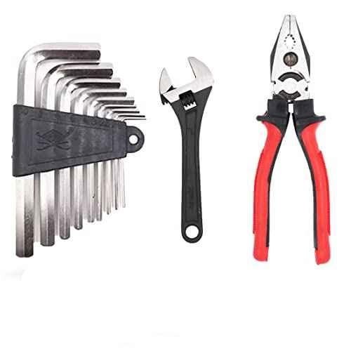Package Contents: 1 Set Contains of 1.5, 2, 2.5, 3, 4, 5, 6, 8 & 10 mm Hex Allen Key with 8 inch Adjustable Wrench & Combinational Plier