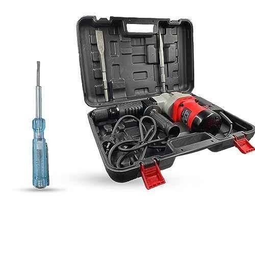 The Hillgrove HGCM1396 is a 1200W demolition hammer concrete breaker with 2 bits and a line tester. The demolition hammer delivers high-impact force for breaking concrete, stone, and masonry with ease. The included bits ensure precision and durability for tough tasks, while the line tester allows for safe electrical testing. Ideal for heavy-duty construction and renovation projects, this combo provides both power and safety for efficient work.