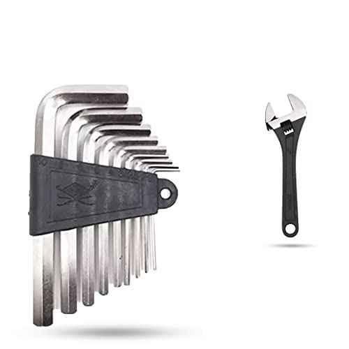 Package Contents: 1 Set Contains of 1.5, 2, 2.5, 3, 4, 5, 6, 8 & 10 mm Hex Allen Key with 8 inch Adjustable Wrench