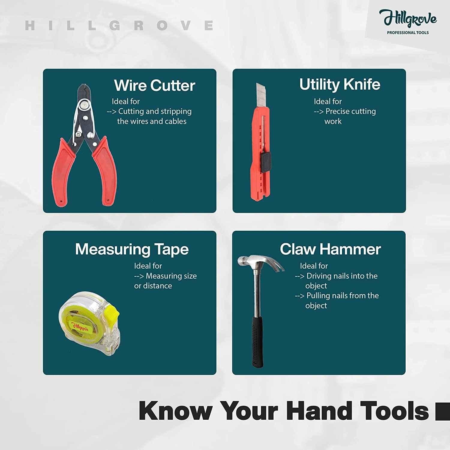 Package Contents: 1 Pc Power Drill, 1 Pc Angle Grinder Machine, 5 Pcs Masonry Drill Bits, 5 Pcs Metal Drill Bits, 1 Pair Gloves, 1 Pc Adjustable Wrench, 1 Pc Combinational Plier, 1 Pc 2-in-1 Screwdriver, 1 Pc Line Tester, 1 Pc Electrical Tape, 1 Pc Wire Cutter, 1 Pc 3m Measuring Tape, 1 Pc Claw Hammer, 1 Pc Utility Knife, 10 Pcs Screws & 10 Pcs Gitti