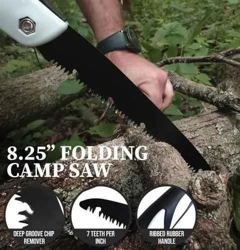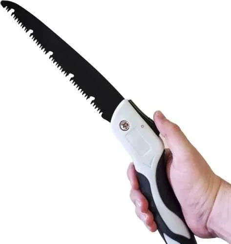 The MECRAAF 8.25 inch Carbon Steel Foldable Garden Saw with Rubber Handle is designed for gardening tasks that require cutting through tough materials like tree branches and bushes. The high-quality carbon steel blade ensures long-lasting sharpness and durability, providing efficient cuts every time. With seven teeth per inch, it can tackle wood and other materials with ease. The foldable design makes it compact and easy to store, while the rubber handle ensures comfort and grip, reducing hand fatigue during extended use.