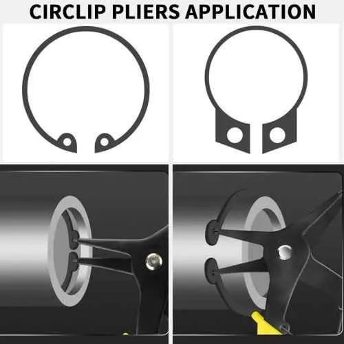The MECRAAF 5.5" Alloy Steel 2-in-1 Snap Ring Pliers are designed for precision and versatility in handling external snap rings. Crafted from high-quality alloy steel, these pliers offer exceptional durability. The tool features a 3-24mm jaw opening capacity, enabling you to work on a wide range of applications. The PVC plastic handle provides a comfortable grip, ensuring control and minimizing hand fatigue. A great addition to any mechanic or DIY toolkit, ideal for efficient and effortless use.