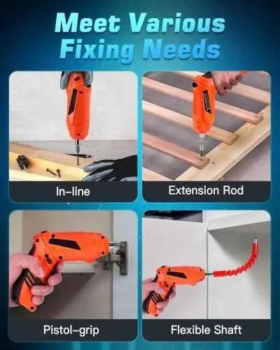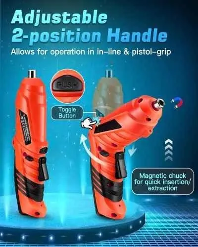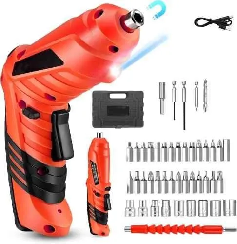 The MECRAAF 41 Pcs Cordless Electric Screwdriver Set is a compact and efficient toolset for all your screwdriving needs. Featuring a 4.2V battery and 1800mAh capacity, this screwdriver offers reliable power for light to medium tasks. The 41-piece set includes a variety of bits in different sizes, ensuring compatibility with a range of screws. The screwdriver features a 2-position handle, LED lighting, and forward/reverse buttons, making it easy to use in tight spaces. Package Contents : 2 Pcs Bits, 25 Pcs Bits, 2 Pcs Drill Bits, 8 Pcs Socket Set, 1 Pc Adaptor, 1 Pc Flex Shaft, 1 Pc Bit Holder & 1 Pc USB Charger